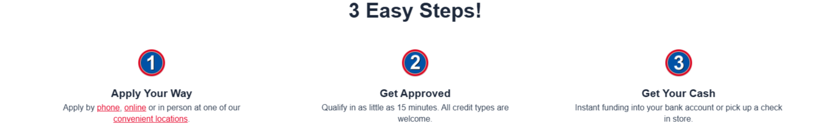 This “Why Choose Cash Time” section is just plain text with no icons or clickable links. It looks boring so the benefits don’t stand out and people tend to skip right over it.